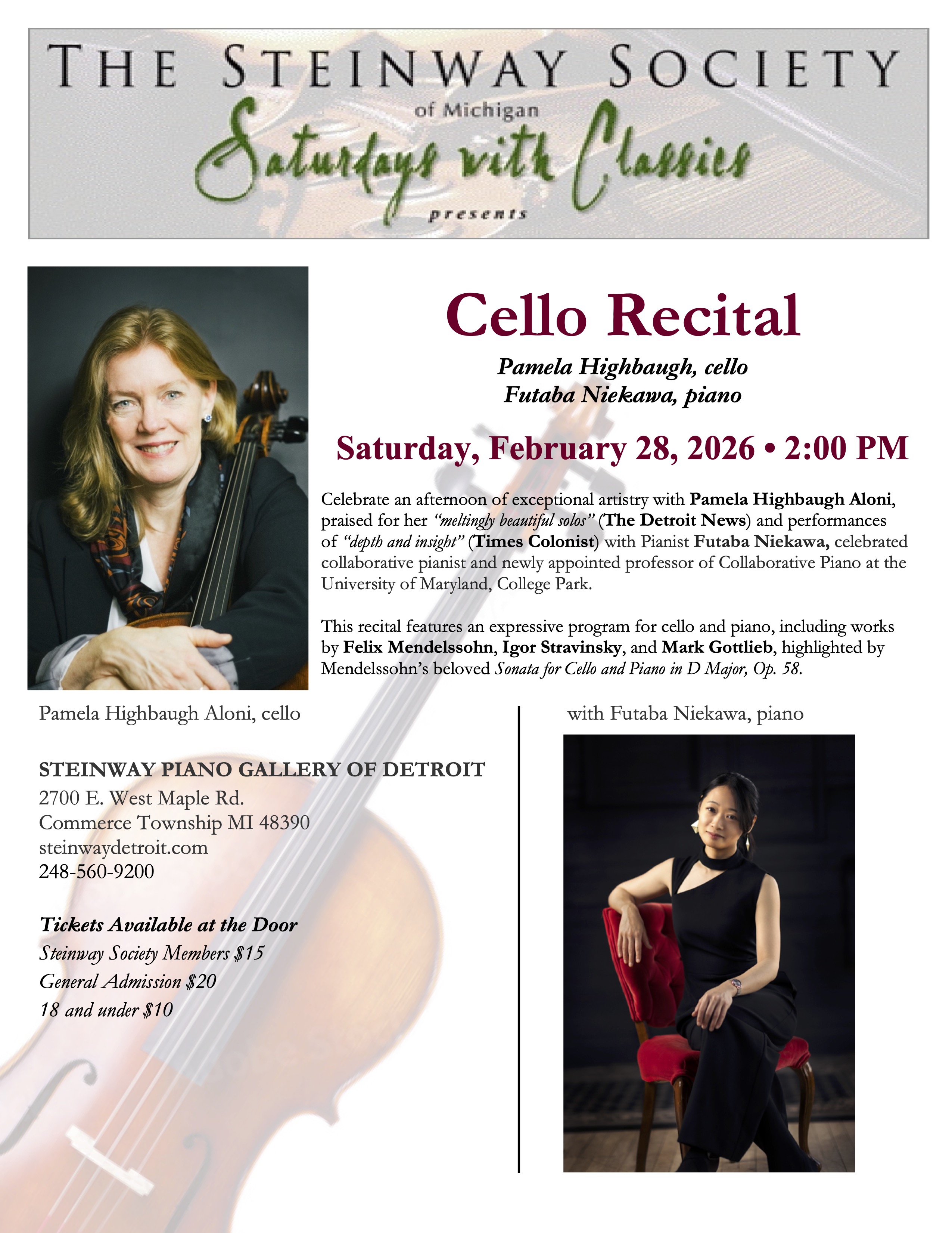Masks not required for Steinway concerts. (Some exceptions may apply. Click on each event for details).